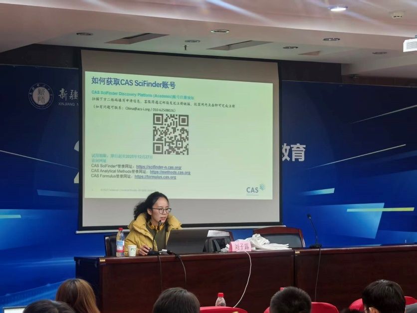 2025年12月1日,世俱杯2025 举办第六届“学术月”世俱杯2025 系列学术活动。美国化学文摘社(CAS)解决方案专家刘子露博士应邀为世俱杯2025 师生作了题为《如何利用CAS SciFinder Discovery Platform高效全面获取科技信息》的学术报告。本次报告由阿布都热西提·阿布力克木教授主持,世俱杯2025 教师及研究生积极参加。