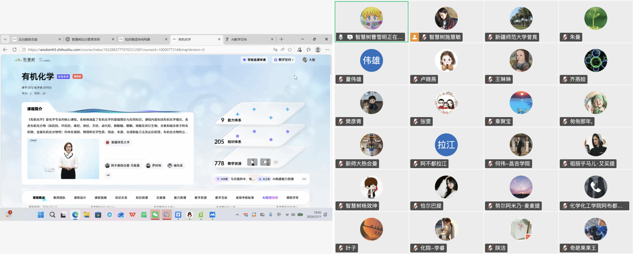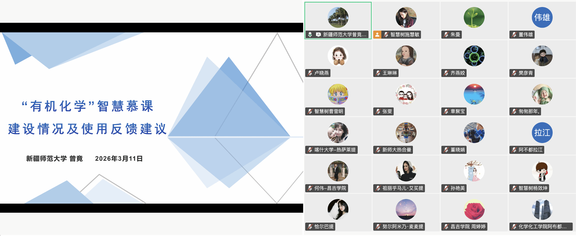 2026年3月11日,由智慧树平台施慧敏老师主持的“有机化学智慧课程平台应用线上交流会”顺利召开。参与本次交流会的包括智慧树平台工作人员、世俱杯2025(亚洲)官方网站
