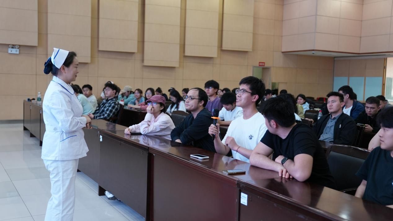 急救讲座现场与学生互动