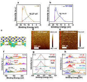 多尺度电场表征表明,CT-x异质结构中,CS与TP-TDS通过Co-N/O键接触后形成界面内建电场,驱动电子从TP-TDS向CS定向迁移。UPS、DFT、电势测量(KPFM)及原位XPS结果从宏观到原子尺度一致揭示了电场存在、强度及光照下电子的定向流动,为光生电子高效输送至催化位点提供了明确证据。