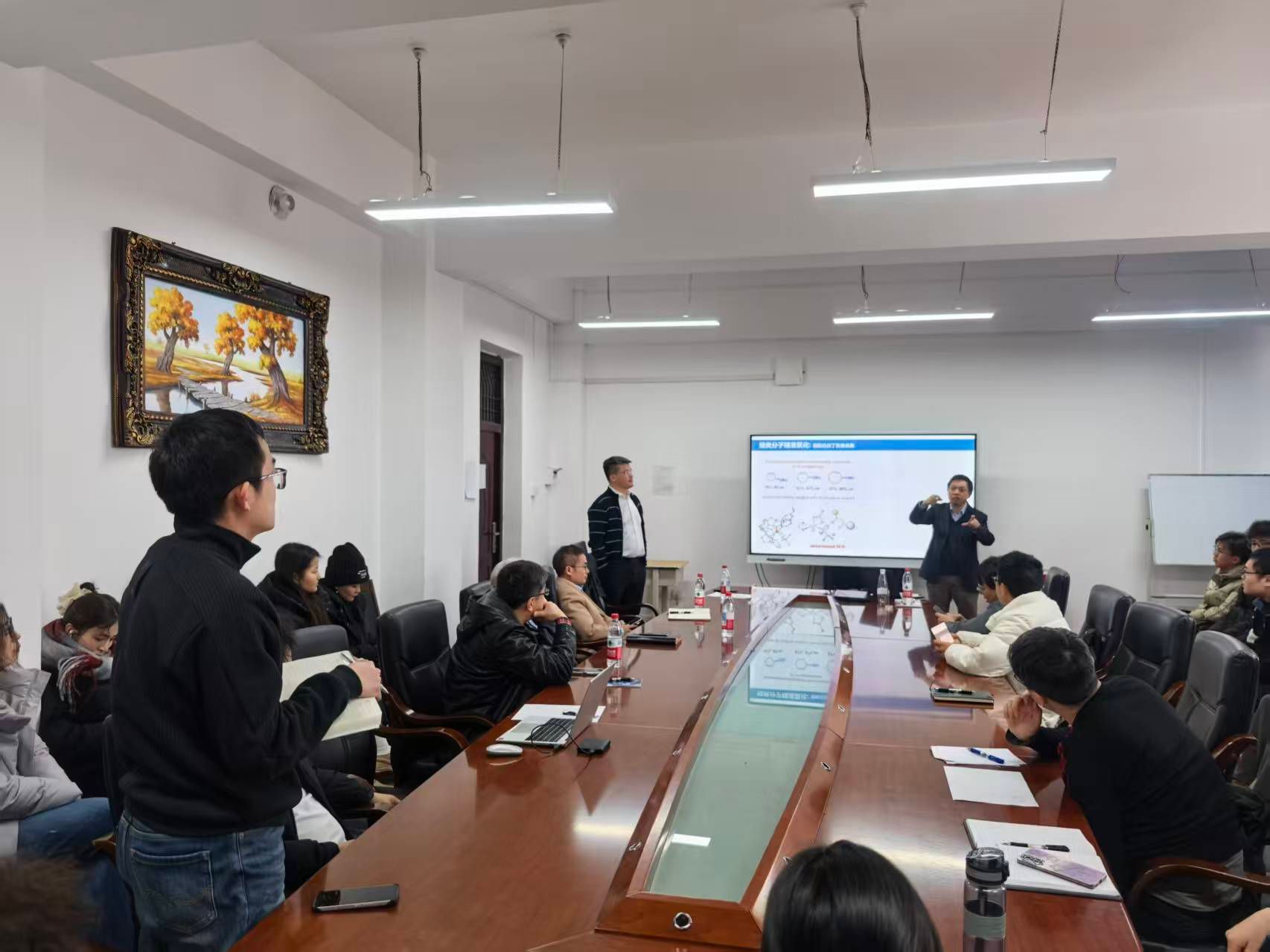师生就“烃类分子的不对称自由基反应,尤其是碳氢键的高位点的不对称转化新反应”等问题与刘老师展开互动交流。